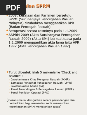 Related : Akta Pencegahan Rasuah 1997 - Akta pencegahan rasuah 1997 sprm..